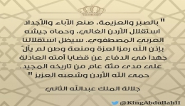 تغريدة جلالة الملك عبدالله الثاني عبر حسابه الشخصي على منصة تويتر بمناسبة عيد الإستقلال ال 75