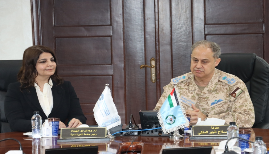 استقبل قائد سلاح الجو الملكي العميد الركن الطيار محمد فتحي حياصات ، اليوم الثلاثاء ، في قيادة السلاح رئيس جامعة الاميرة سمية ، الأستاذ الدكتور وجدان أبو الهيجاء والوفد المرافق لها.