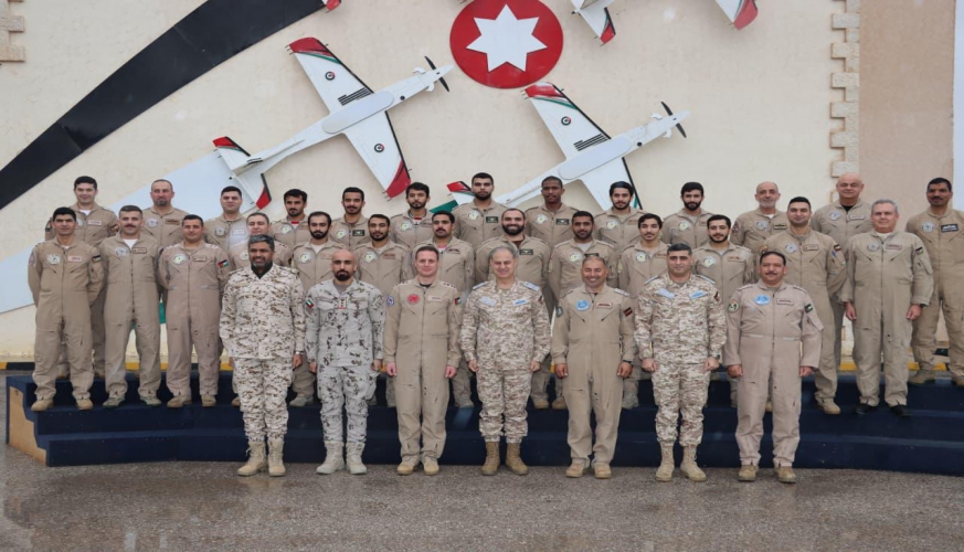 واستمع العميد الركن الطيار حياصات إلى إيجاز عن الدورة التي اشترك فيها 14 طيار من دولة الإمارات العربية المتحدة ومملكة البحرين الشقيقتين، حيث أتم الخريجون المنهاج المقرر والمعمول به ليكونوا طيارين مقاتلين قادرين على تحمل المسؤولية في أداء واجباتهم بكل احترافيه وإتقان.