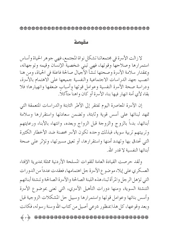 وبمقدار �سلامة الأ�سرة و�صحتها تن�ش أ� ا ألجيال �صالحة فاعلة في الحياة ،ومن هنا