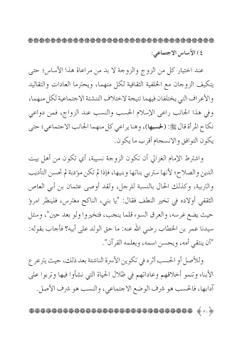 وا�شترط الإمام الغزالي �أن تكون الزوجة ن�سيبة� ،أي تكون من �أهل بيت