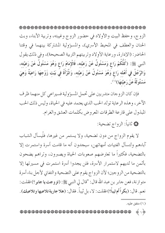 بالت�ضحية من الزوجين؛ ألن الزواج يقوم على الت�ضحية والتفاني ألجل بناء �أ�سرة
