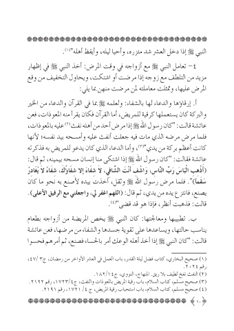 ب .تطبيبها ومعالجتها :كان النبي يخ�ص المري�ضة من أ�زواجه بطعام