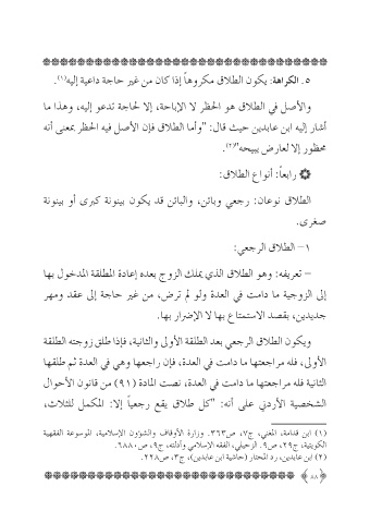 .5الكراهة :يكون الطلاق مكروه ًا �إذا كان من غير حاجة داعية �إليه(((.