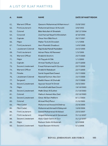 A LIST OF RJAF MARTYRS