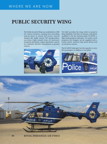 The Public Security Wing was established in 1989 The RJAF provides the wing, which is based in