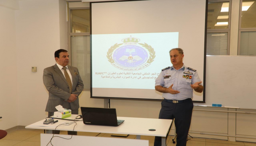 والتقى قائد سلاح الجو الملكي خلال زيارته المنتسبين في الفوج الاول ببرنامج الماجستير في أدارة الموارد البشرية والدفاعية ، الذي يهدف لاعداد خريجين قادرين على تحليل المشكلات المتعلقه بإدارة الموارد البشرية وإجراء بحوث تطبيقة والتعامل مع الاختلافات الفرديه ليكون الخريجيون قادرون على استخدام استراتيجيات التدريب الحديثه وممارسة الاستقلالية والمسؤؤليه وتحليل المشكلات والقضايا في إدارة الموارد البشرية واجراء البحوث وتطوير استراتيجيات الموارد البشرية.